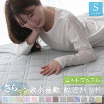敷きパッド 吸水速乾 ニットワッフル シングル 100×205cm 丸洗いOK 抗菌 防臭 敷きパット ベッドパッド ベッドパット A726