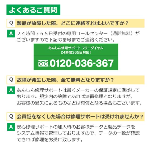 思いがけない故障やトラブルも、修理費用の心配をせずにサポートが受けられます。
