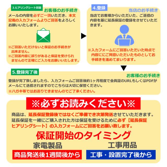 ※こちらで販売している延長保証は当店【住設と電材の洛電マート auPAYマーケット店】で対象製品をお買い上げいただいた方のみ対象となります。他店舗様でお買い上げいただいた製品に保証をつけることはできかねますのでご了承ください。
