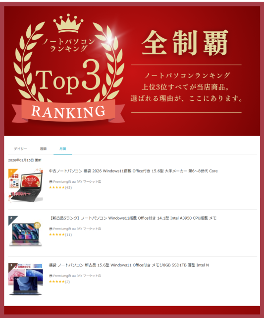 中古ノートパソコン 福袋 2026 Windows11搭載 Office付き 15.6型 大手メーカー 第6〜8世代 Core i3/i5 メモリ4GB SSD最大256GB 高速SSD搭
