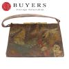 中古 和装バッグ ハンドバッグ レザー 牛革 ブラウン マルチカラー 金唐革 和装 呉服 和服 きもの レディース 女性