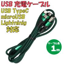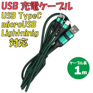 新品 USB充電ケーブル C-L940AC3-GR 3in1 TypeA・TypeC → TypeC・microUSB・Lightning 最大電流:2.4A 最大ケーブル長:約1m カラー: