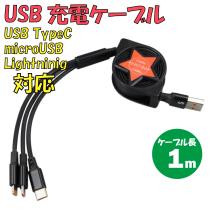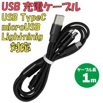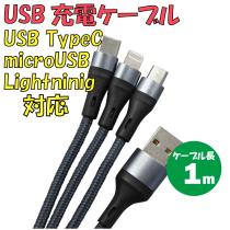新品 USB充電ケーブル C-L940AC3-BK 3in1 TypeA・TypeC → TypeC・microUSB・Lightning 最大電流:2.4A 最大ケーブル長:約1m カラー: