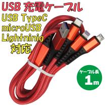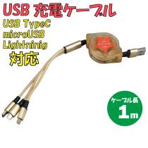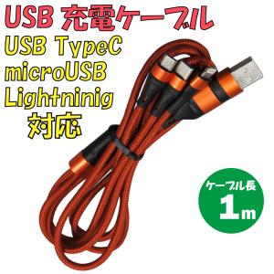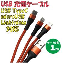 新品 USB充電ケーブル C-L940AC3-OR 3in1 TypeA・TypeC → TypeC・microUSB・Lightning 最大電流:2.4A 最大ケーブル長:約1m カラー: