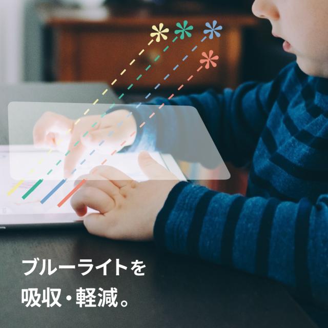 長時間浴びることにより目の疲れや睡眠障害の問題を引き起こす要因の一つと言われているブルーライトをカットする保護フィルムです。