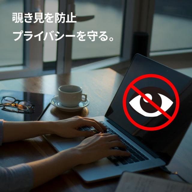 正面からの視認性は確保しつつ、一定の角度を超えると画面が黒くなり、周囲からの視認を防ぎます。