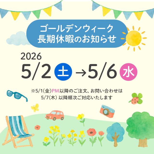 【GW休業のお知らせ】5/2(土)~5/6(水) 休業とさせていただきます。