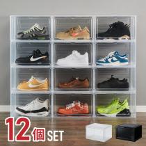 シューズボックス 12個セット クリア ブラック スニーカー 透明 スタッキング可能 ハイカット対応 おしゃれ インテリア シューズケース