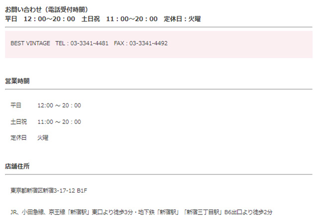 当店について(Information)