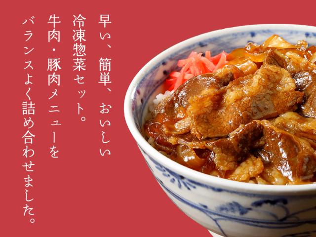 豚肉牛肉料理をバランスよく詰め合わせています。