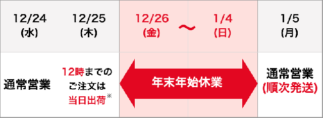 ※ご注文・メールでのお問い合わせは年中無休で受け付けておりますが、お問い合わせの回答につきましても営業日以降に順次対応となります。