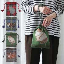 松尾ミユキ チェック柄 巾着|Drawstring bag おしゃれ かわいい チェック アート 猫 ねこ ネコ バッグ ミニバッグ 散歩 買い物 収納 小
