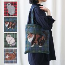 松尾ミユキ チェック柄 トートバッグ|Rectangle tote bag おしゃれ かわいい チェック アート 猫 ねこ ネコ バッグ 散歩 買い物 収納 小