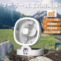 2023新商品 ソーラー扇風機 アウトドア 扇風機 キャンプ 扇風機 5段階風量 調光3段階LEDライト 小型ソーラーパネル付