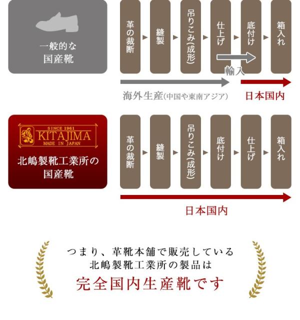 革靴本舗のシューズは、裁断から仕上げまで