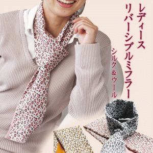 【シルク ショートマフラー】レディース・リバーシブルミフラー プレゼント 贈り物 ショートマフラー ミニマフラー 素材 シルク ウール
