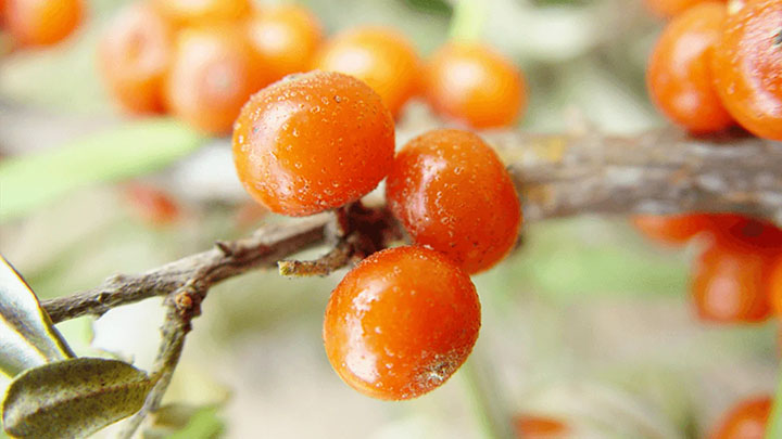小豆ほどの小さな果実に、200種類以上の栄養素を備えています。ユーラシア大陸に広く分布し、サジー(沙棘)やシーバックソーン(Sea buckthorn)などさまざまな名前がありますが、その栄養価の高さから「スーパーフルーツ」と呼ばれています。