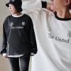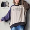 ロンT カットソー 長袖 メンズ レディース クルーネック 配色 リブ切り替え ジャージ ポリエステル ストレッチ ロゴプリント ゆったり