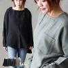 シャツ 長袖 プルオーバー ダブルガーゼ レディース 綿100 コットン 春 すっきり 着やせ ワイド ドルマンスリーブ ボートネック 切り替え