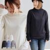 カットソー 長袖 レディース モックネック 無地 コットン 綿100 ナイロン 異素材切り替え 袖リブ ゆったり 大きいサイズ 体型カバー カジ