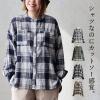 シャツ 長袖 レディース 袖リブ すっきり 着痩せ バンドカラー チェック柄 マドラスチェック 綿100 コットン スラブ 薄手 軽い 伸縮性 ゆ