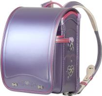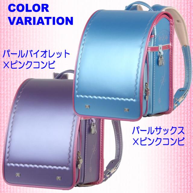 日本製 お嬢様刺繍の パールカラーランドセル (パールバイオレット×ブルー刺繍)A4フラットファイル対応