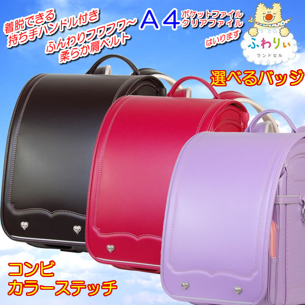 ランドセル ふわりぃ 女の子 パール仕上 パイピンコンビ メガポケット パールピンク×Pパープルフチ A4フラットファイル対応 送料無料