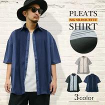 【閉店セール】プリーツ切替オーバーサイズ 半袖シャツ 1038vrメンズシャツ 半袖シャツ ビッグシルエット オーバーサイズ ポンチ素材