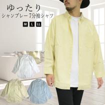 【閉店セール】ビッグシルエット 半袖シャツ かすれ織シャンブレーシャツ 無地 半袖 84383 オーバーサイズ ロング丈シャツ 無地シャツ