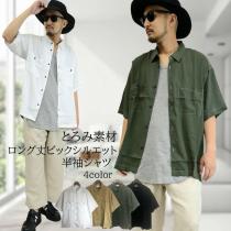 【閉店セール】ビッグポケット&ビッグシルエット 半袖シャツ rv7614 羽織るだけで人気のゆるコーデが完成!カジュアルにはもちろん部屋着(