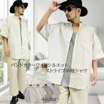 【閉店セール】バンドカラーオーバーサイズビッグ 半袖シャツ さらっと羽織れる万能シャツ!71383人気の大きいサイズでコーデをランクア