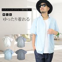 【閉店セール】半袖シャツ メンズ ビックシルエットオックスフォード素材半袖シャツ 73383 無地 半袖 ビッグシルエット オーバーサイズ