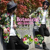 【閉店セール】ボタニカル総柄形状記憶の ワイヤー付 長袖シャツ メンズシャツ 長袖シャツ ロングシャツ 総柄シャツ ガラシャツ buj-00