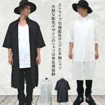 【閉店セール】ロング丈 半袖シャツ メンズ ビッグシャツ 無地シャツ rv8105 ストライプシャツ オーバーサイズ ビッグシルエット 切替配