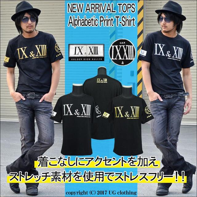【閉店セール】G.H.R NINE&THIRTEENフロントゼブラIX&XIIロゴプリント 半袖Tシャツ オラオラ 70736 メンズファッション キレイメ シン