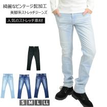 【閉店セール】KUI メンズデニム ストレッチデニム 髭加工ジーンズ 33243 スキニーパンツ スリムパンツ ビンテージ加工デニム ストレッチ