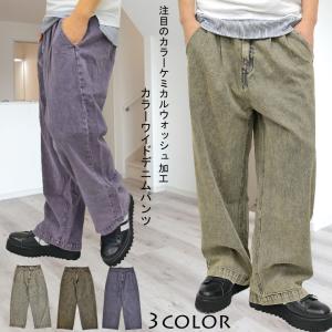 【閉店セール】ワイド ジーンズ デニム メンズ カラーケミカルワイドデニムパンツ 33-h364 ワイド テーパード バギーパンツ ワイドパンツ