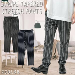新作 ストレッチストライプ テーパードパンツrv7504 テーパードパンツ ポンチ素材 ストレッチ ストライプ 1タック センタープレス風 イー