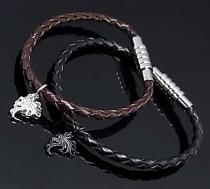 LION HEART/ライオンハート【ステンレスアクセ】ペアブレスレット レザーブレスレット ブラック 04B122SM/04B122SL(送料無料)