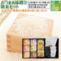 敬老の日 御歳暮 御中元 [味噌汁・銘米セット] ギフト だしを食べる味噌汁2種(赤だし/合わせ味噌/各3)+無洗米300g 6種 (魚沼コシヒ
