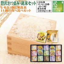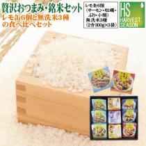 敬老の日 御歳暮 [贅沢おつまみ・銘米セット] ギフト 瀬戸内産レモ缶(境港サーモン/ひろしま牡蠣/天然ブリ/ひろしま小鰯)各1 +無洗米3