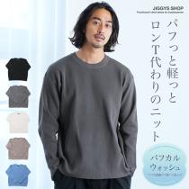 クルーネック ニット ワッフル編み セーター パフかる メンズ クルーネック サーマル トップス メンズファッション ブラック グレー ホワ