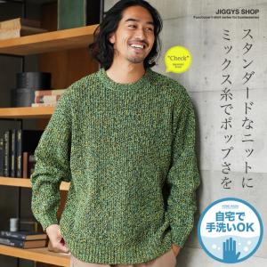ニット メンズ セーター クルーネック 洗える 洗えるニット◆ウォッシャブルポリワッフル畦クルーネックニット◆長袖 長袖ニット カラー