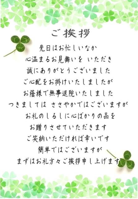メッセージカード快気内祝