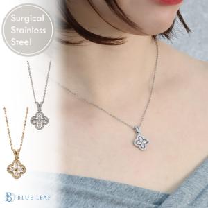 ステンレス ネックレス フラワー クローバー 花 CZダイヤ あずきチェーン 金属アレルギー対応 k18コーティング アジャスター付き シンプ