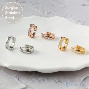 クロスラインピアス CZダイヤ フープピアス k18コーティング サージカルステンレス 小ぶり 金属アレルギー ニッケルフリー 低アレルギー