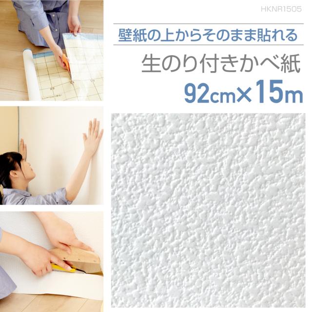 壁紙 アウトレット HKNR1505 壁紙の上からそのまま貼れる生のり付き壁紙 92cm×15m 繊細なテクスチャーのホワイト