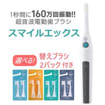 超音波歯ブラシ スマイルエックス【製造元限定特典】替えブラシ選べる2パック付き グレー 電動歯ブラシ 優しい振動 歯茎ケアも 日本製