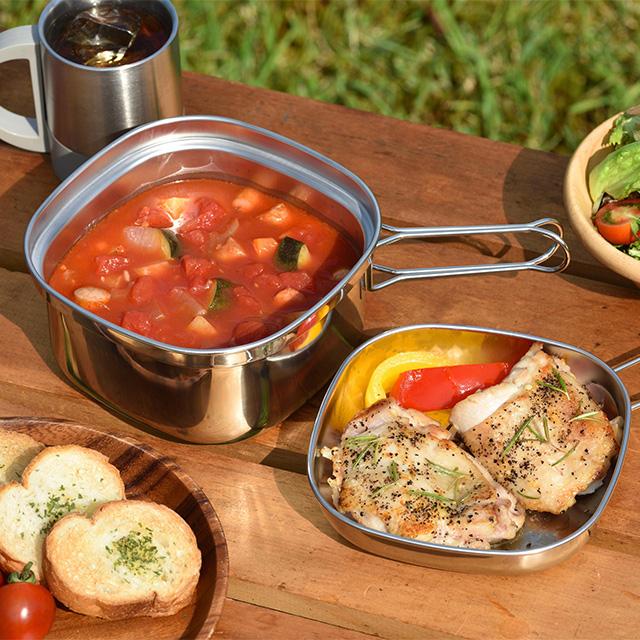 KOGU 四角い鍋 たためるハンドル 日本製 ステンレス製 IH ガス 直火 キャンプ アウトドア ラーメン鍋 インスタント麺 冷凍うどん 下