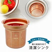 純銅製 ゴミポケット 日本製 殺菌 作用 悪臭 ぬめり 銅 つゆ対策 じめじめ対策 清潔 衛生的 銅イオン 抗菌 排水口 下村企販 銅で 殺菌作
